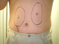 手術前にどこに人工肛門をつけるかをマークされたもの.