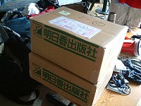 麻里さん,旅行用カートを持参し台風暴風雨の中を来てくれた.