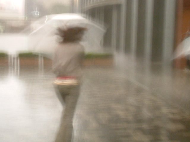 雨も激しく降ってきて,あわててビルに待避.