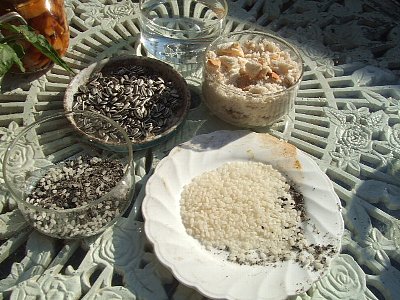 コメとパンとみかんと牛脂とヒマワリの種をあげてるんだけど