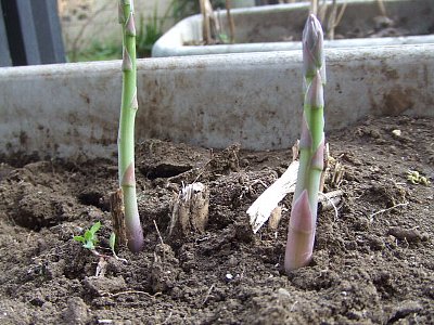 もう5年目くらいになるアスパラも大きくなってきたんで食ってみた.