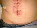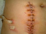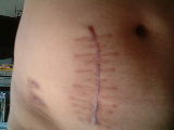 改めて下腹部を見ると術後の切り傷を中心にゆがんでいる(笑)