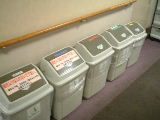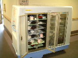 食事を運ぶカート.食べ物を載せたトレイの左を温,右を冷で温度保管する.よく考えるなぁ.