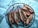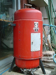 自分で作る燻製のおもしろいところは,自分で好みを調整できること. そして思い通りに作れないことだ(笑) できるまでのワクワク・ドキドキがたまらないが, 燻製機のふたを開けたときの,芳ばしい香りはたまらない. 燻製機(釜)は→ でこれで燻す. |
