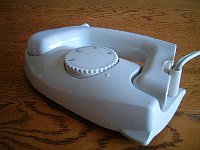 意外だが縦型が少ないのはなぜだろう? これはすごい発明だと思う. ズボンプレッサーでアイロン掛けをしないで済んでいる. オリジナルは英国COLBY社の縦型のプレッサーだと思うが, さすがマネシタ電器がコピー商品を販売したので私も愛用. こういうプレッサーは縦型でないと使いにくいだろうに... 初代(1981年ごろ購入)を使いきり,今のは2代目(たぶん1991年8月23日購入). 途中で止めネジが破損したが自分で修理して使いつづけている. |
