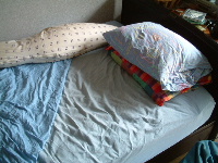 エッ○には不向きだが安眠するにはイイ♪ 寝るときにパスカルの定理を思い出す(なんて嘘だけど) フランスベッド製. 2004年現在,フランスベッドはウォターベッドから撤退したようだ. メンテナンスフリー(手入れ不要)がうれしい. この時から布団も羽布団ではなく羽毛布団にした. マットの固さも自由に変えられるので,私はカタメで使っている. 年に一回,シリンダーの水を交換するのが一苦労^^;; エッチィな行為には向いてないんだ^^;; あくまでも睡眠用だなぁと実感. |