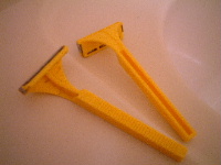 | ¥100ショップの髭剃り | これが最強の髭剃り. 刃が強くて丈夫で切れ味が維持されている. 電動髭剃りも使っていたが今はちょっとお休み(笑) お気に入りはブラウン社のシェーバーだった. 『おまえのヒゲは消しゴムで消える』と父に言われたが, 大学に入学したら買ってくれた(笑) 交換刃は約20年間提供されていた. とうとうその交換刃がなくなりやむなく使用を中止. 交流・充電式が主流になったが,交流のみのを再発売希望. 【追記 2005.04.05】2004年12月に入院したので, 再度電気髭剃り(ブラウン社製)を購入した. その時の気分でドッチかを使っている. 交流・充電式を買ったが仕方がないよネ. |