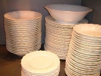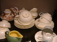 | ボーンチャイナの お皿やティーカップ | ノリタケの9810というボーンチャイナシリーズ 種類は少なく,数は多くというポリシーで集めた. 欠けたり割っても買い足しができるのでこのシリーズを愛用. 実際,よく割るんだなぁ >_<;; 食器洗浄器を使うので,食器の大きさは同一がいい. 食器洗浄器の洗剤は塩素が強いので,模様が消える. だから模様ナシの白にした. もう少し安いと良いんだけどね^^;; 私の家には茶碗やお椀や湯飲みがない. 歯ブラシは個人用だが,各人固有のタオルもなく,全部共有. なじめない人はびっくりするかも...