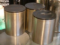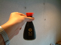 私はこのデザイナーを尊敬する. 地味なのだが,誰がこんな素晴らしい醤油さしのデザインをしたのだろう? いい仕事をしているなぁ... おしゃれな醤油のビンを捜し求めたのだが, やはりこのビンの行き着いてしまう. どの角度でも一定した流れを保つのは, 相当練りに練った工業デザインなのだろう. 素直に敬意を表したいデザインだ. |