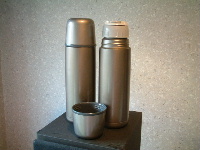 お茶が冷めにくいので重宝している. 日本酸素社製 お茶が冷めないし,酒をロックで飲む時に氷が溶けにくい. 購入したのは1982年ごろ. |