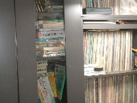 | 本棚・レコード棚 | LPの保管には苦労する. 日本ビクター社製.ブランド名はエクステ. 通常本棚の奥行は29cmなのでレコード(LP)の幅である30cmでははみ出てしまう. よって奥行に余裕がある棚が欲しかった. ビクター製なら後から買い足せると思っていたが,今は生産中止したようだ. こういう裏切りは許せんゾ. |