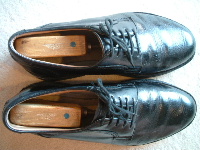 同じタイプの靴が3足あって,交代して履いている.型崩れしないように,シューズキーパーで固定して保管. このシューズキーパーも1980年ごろから使っている. 靴底は最低1回は張り替えて再使用する. コストはかかるが靴職人・修理工さんの生活があるじゃん(笑) 安くはないが,なるべく長く履こうと思っている. なお,フォーマルな靴もリーガルにしている. ウィングが中にあるタイプ. 冠婚葬祭やなにか特別な時に履いている. |