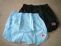 | 下着(トランクス) | ウェストが太くなったのがグヤジイけど パンツは1984年ごろ,ブリーフからトランクスに替えた. 青のトランクスが好きと付き合っていた女の子に言われて全部青にしたヨ.(笑) HANESのブリーフはなぜかポケットがついているので愛用したが, 1990年ごろからポケットを廃止しやがったのでメーカーを問わなくなった. タイの伊勢丹でマトメ買いが多い. |