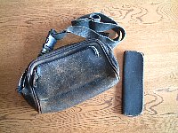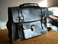 1983年ごろ青山のヘルツで購入した.このころはオーナーの近藤さんが店内で制作していた. ヘルツの革カバンはとても丈夫で,20年以上愛用している. 大事にしていたもうひとつの革カバンが冠水被害にあってしまい,残念なことをした. →は同じヘルツ製の車掌さんが使いそうなバッグ. 同じ頃購入し現在も愛用している. ペン入れも同様. |