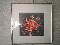 | 令ちゃんの更紗染め | モチーフは太陽です. サザエに見えますなんていうとお叱りを受けます(笑) |