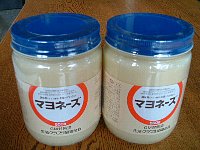生活クラブ生協の | マヨネーズ このマヨは市販品の中で一番うまい. | このマヨの空き瓶を保管用に使っている. これもまた使いやすい.