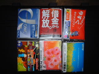 新宿の街頭でサラ金のティッシュと自己破産を請け負う弁護士事務所のティッシュが両方配られている.(2003年)