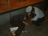 渋谷のセンター街で倒れている若者を警備員か警官が調べていた.