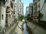 渋谷のJR線路脇の川.