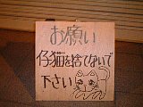 よく見ると,『お願い 仔猫を捨てないでください』だってさ.→