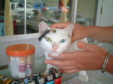 右のネコはトランの町の床屋さんで飼われているネコだが左右の目の色が違っていた.